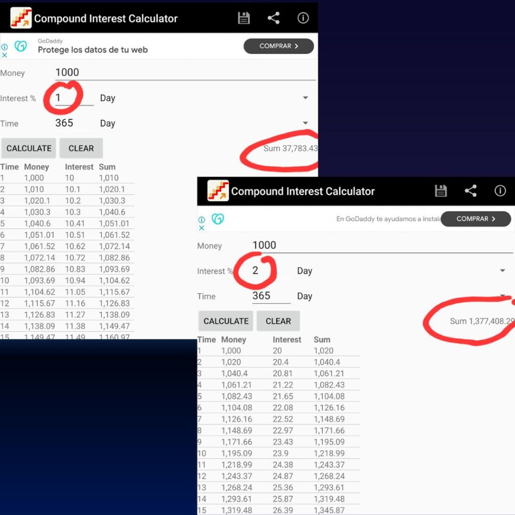 Yg compound 1% sehari, modal seribu, sethn jadi 37 ribu.