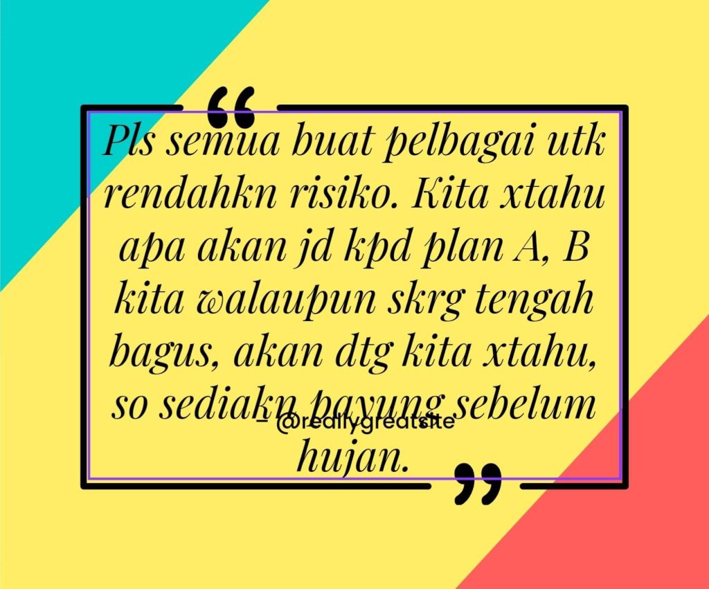Jika lepaskn peluang, jika menjadi, rugi pulak xsambut peluang. So pegang dua basic rules dlm investment ni ⤵️